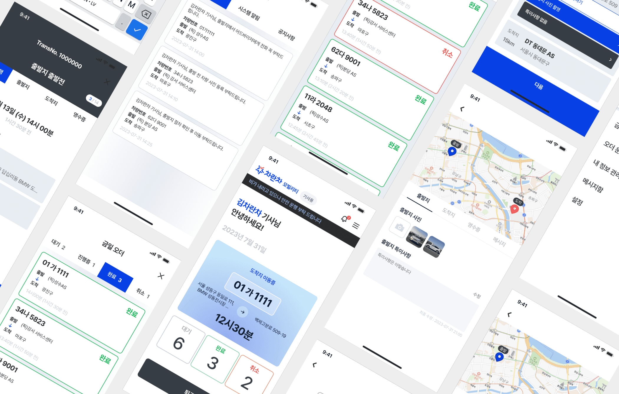 • iOS / Android 기사 전용 앱 UX·UI 디자인 • 운영사 오더·운영 관리 웹 UI 설계 • 차량 상태 확인, 사진 촬영·업로드, 진행 단계 관리 플로우 구축 • 실사용 환경을 고려한 직관적인 인터페이스 및 정보 구조 • 모바일·웹 반응형 UI 퍼블리싱 • 신규 서비스 구축에 따른 UX 기준 및 화면 구조 정의